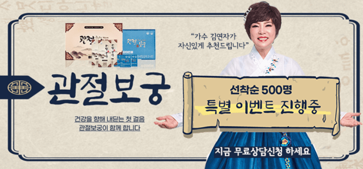 안녕하세요 이번 포스팅에서는 가수 김연자 씨가 광고 모델하고 있는 건강기능식품 '관절 보궁 가격' 대해서 알아보도록 하겠습니다.